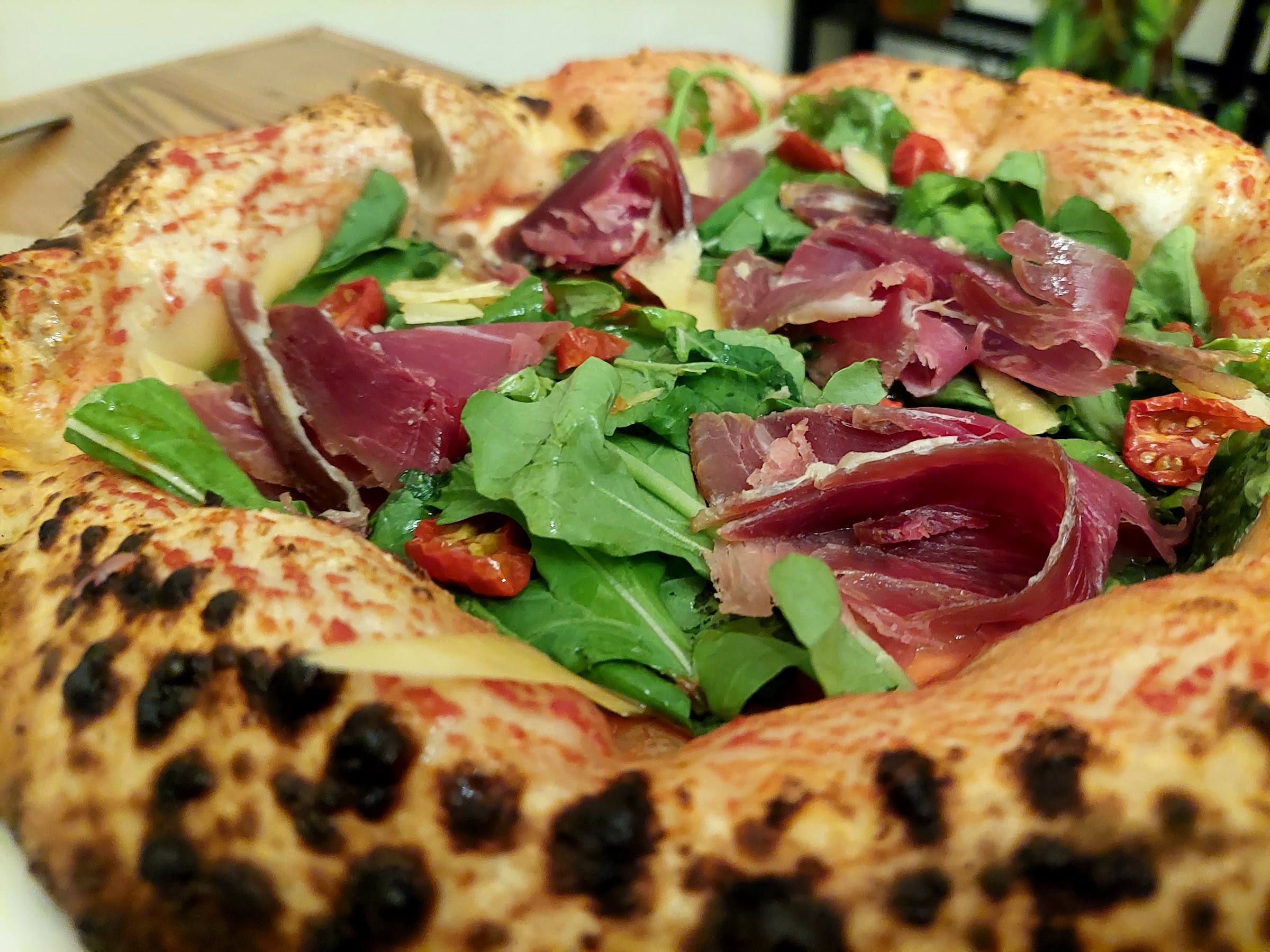 Masa madre fermentada 72 horas, ingredientes importados directamente de Italia, horno de leña tradicional napolitano.